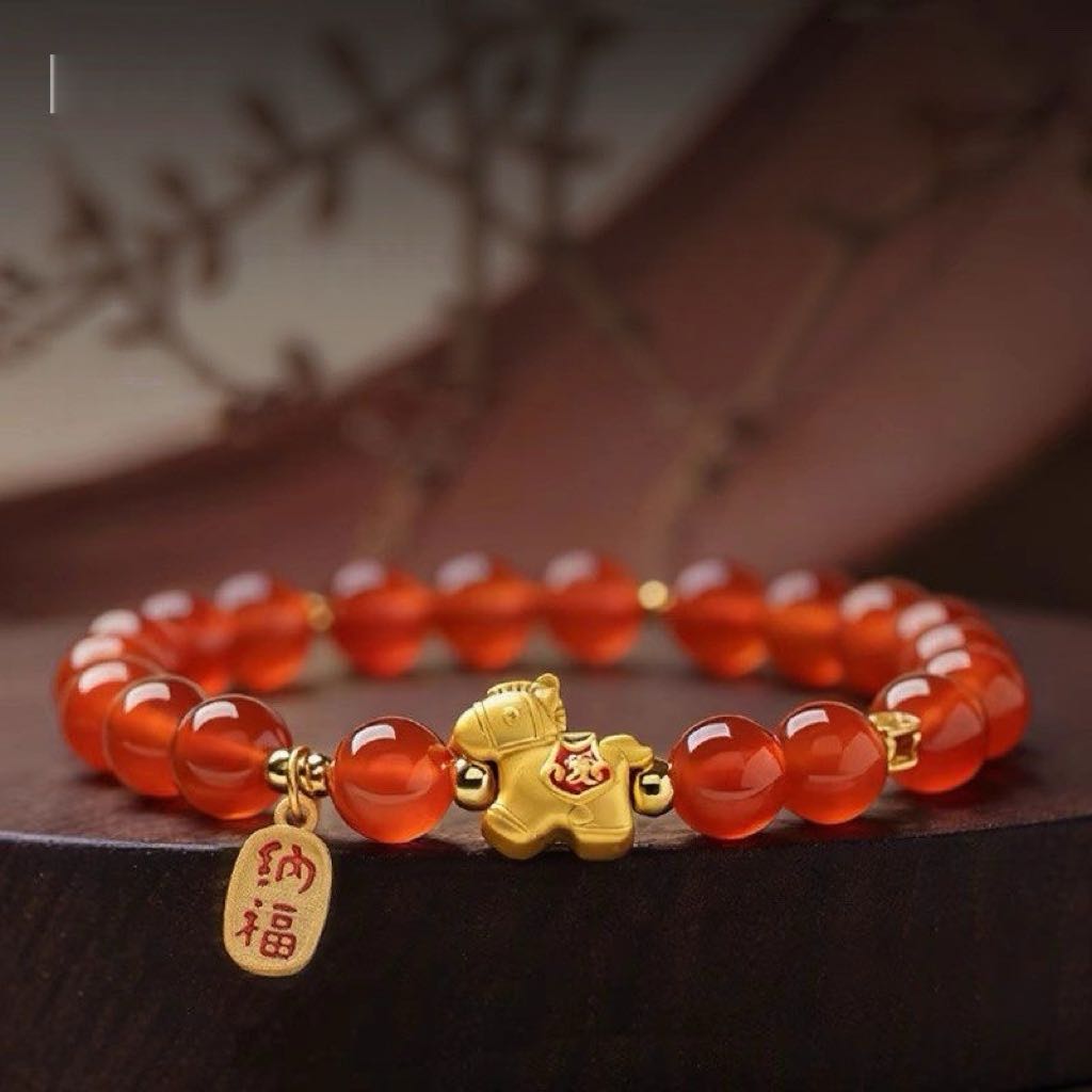 - Crafted with authentic natural red agate stones and premium alloy Fire Horse charm