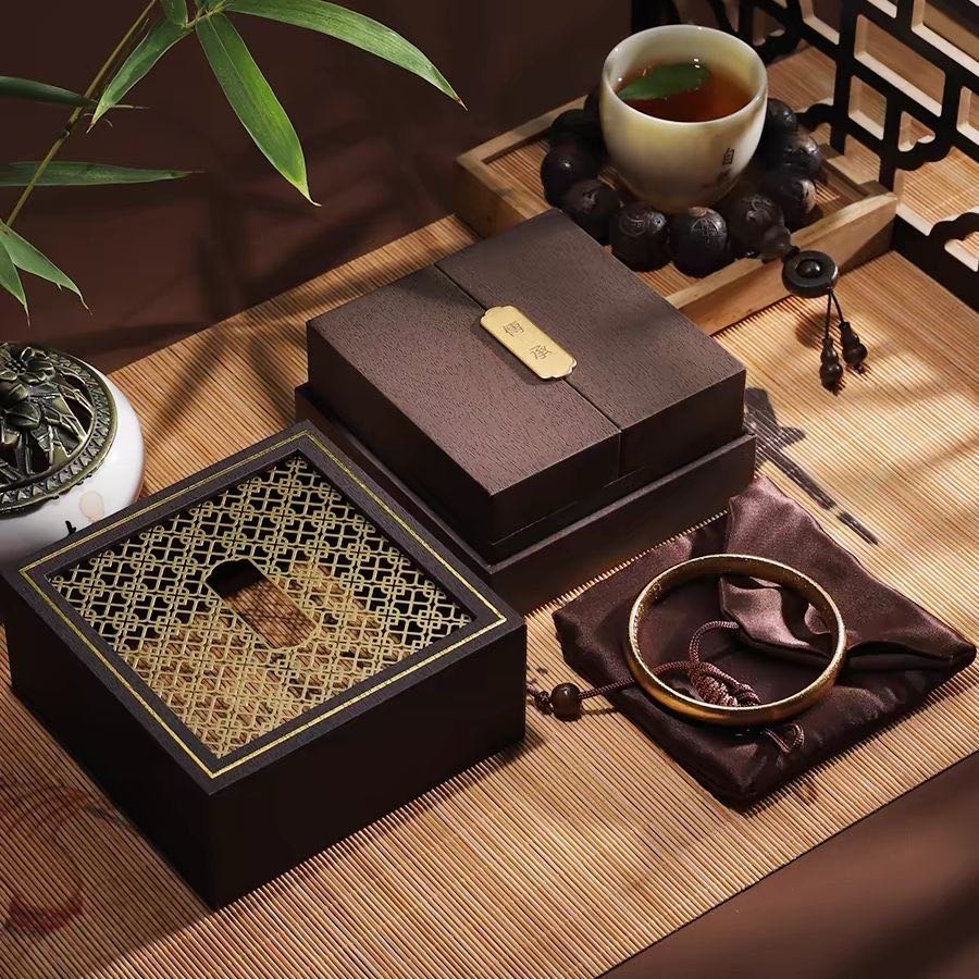 The surface of this premium gift box features carefully designed auspicious patterns that carry deep symbolic meaning in Eastern traditions. These patterns represent wishes for luck, prosperity, and abundant blessings for the recipient. In feng shui philosophy, surrounding precious objects with auspicious symbols amplifies their positive energy and creates a harmonious field of fortune. The brown and gold color combination symbolizes stability meeting prosperity, earth energy meeting wealth, and grounded success. When someone receives a gift in this beautifully patterned box, they immediately sense the thoughtfulness and intention behind the present, elevating the entire gifting experience to something truly meaningful and memorable.